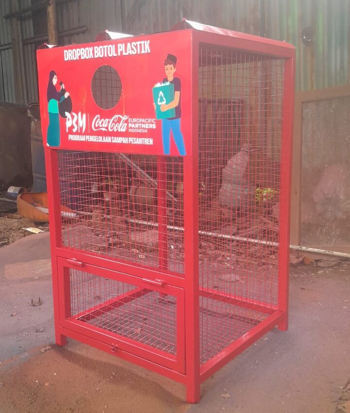 Dropbox botol plastik berbentuk kotak yang dirancang sebagai sarana pengumpulan botol plastik terpilah. Struktur rangka yang kokoh mendukung penempatan di area publik, sekolah, perkantoran, dan fasilitas umum sebagai bagian dari program pengurangan dan daur ulang sampah plastik.